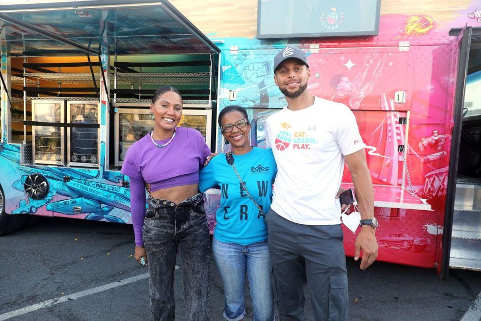 From here, according to reports, CEO of Eat. Learn. Play. suggested a bus and the rest goes down in we-gotta-look-after-our-communities history. Cruising Kitchens was solicited to convert the bus, and Oakland mural artists Illuminaries created the visuals on the bus that include Ayesha Curry cooking, Stephen Curry shooting a basketball, local landmarks like the San Francisco-Oakland Bay Bridge and more. So awesome!