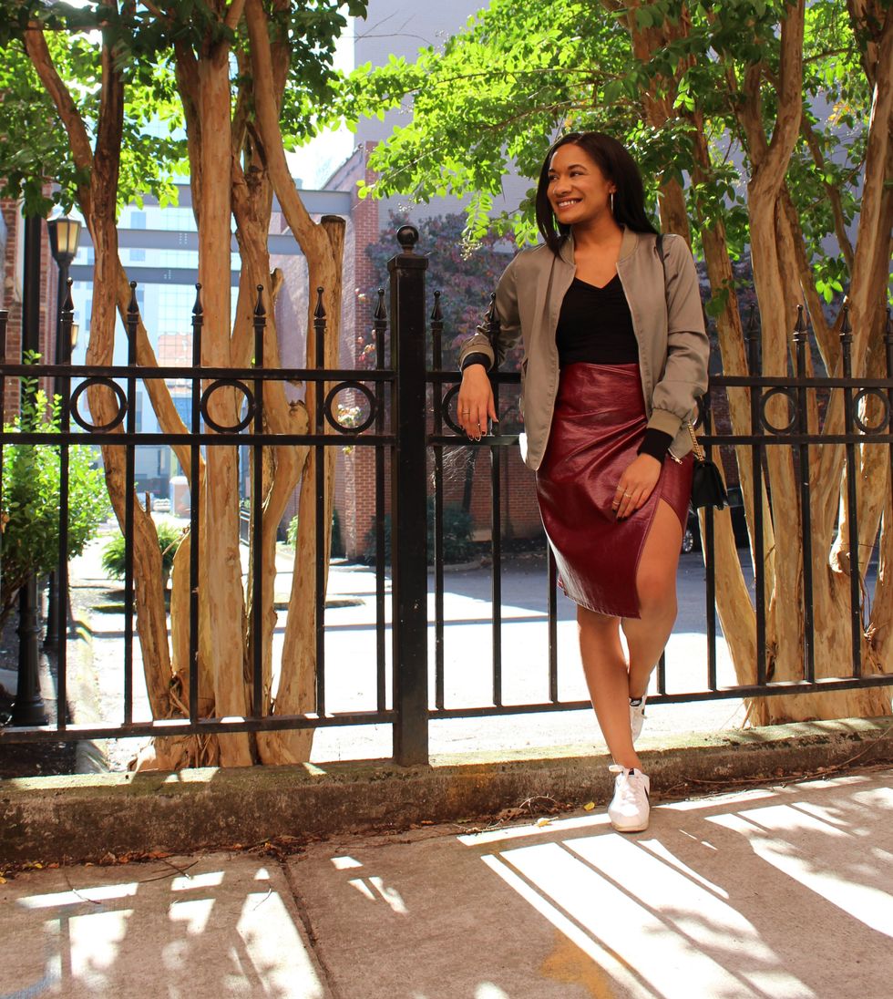 Don't be fooled - midi skirts are perfect for the girl who loves sneakers. Quite possibly one of the coolest street trends in 2019 was to pair any outfit with white sneakers. It's the perfect way to capsulize any outfit and a street trend I've been practicing for years. If you want to add some depth, opt for a skirt with a slit. It gives you the illusion of heels without having to actually wear them. It's the perfect "girlboss-on-the-go" look that can't be beaten.
