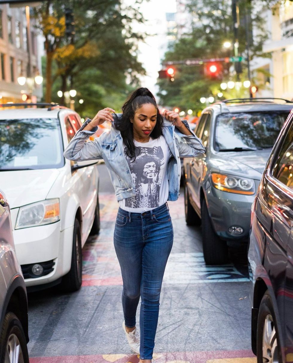 "A classic denim jacket is a versatile piece that will never go out of style. One thing I love about this one from All Saints is that all of my essentials have a home in one of the many pockets so I can be hands-free when I don't feel like carrying a purse. A denim jacket is a yearlong staple and is perfect for layering when the temperature dips."