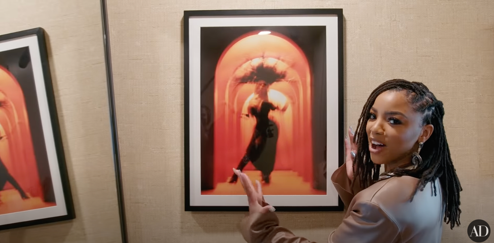 When you first walk into the apartment, you are hit with a beautiful entryway that features an oil canvas painting of Chloë and her sister Halle Bailey.