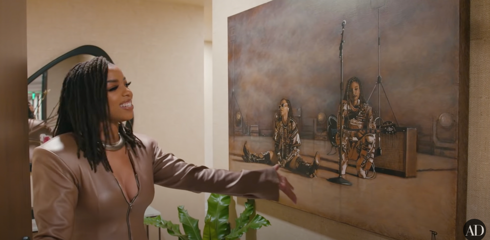 When you first walk into the apartment, you are hit with a beautiful entryway that features an oil canvas painting of Chloë and her sister Halle Bailey.