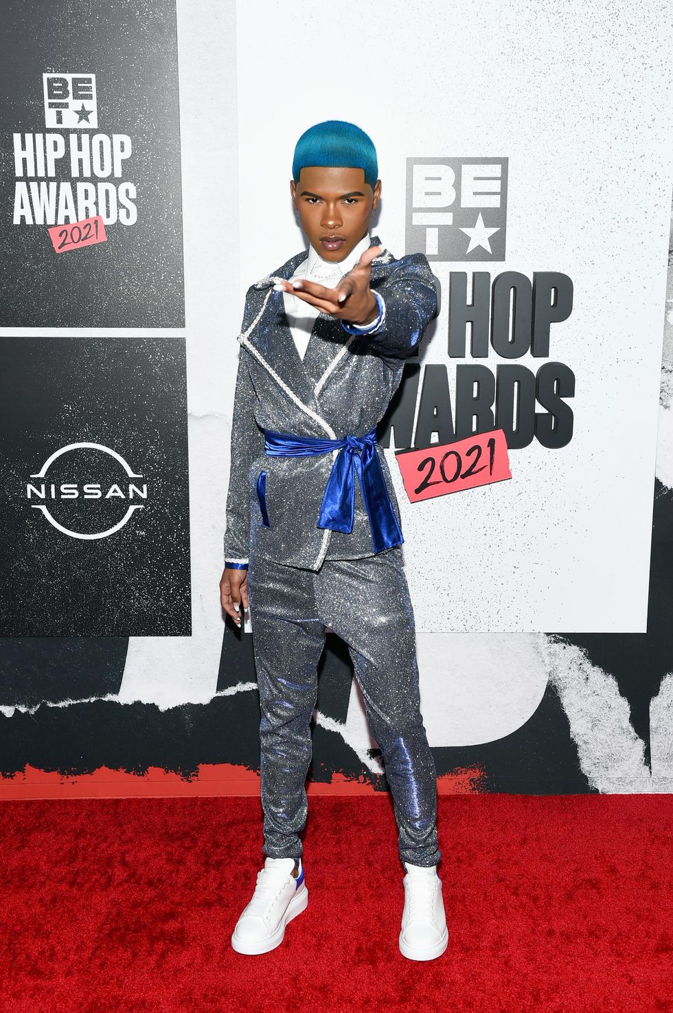 Kidd Kenn shut down the red carpet in a modernized silver and blue suit. Male artists tend to wear the same thing, so it's exciting to see a risk-taker on the BET red carpet.