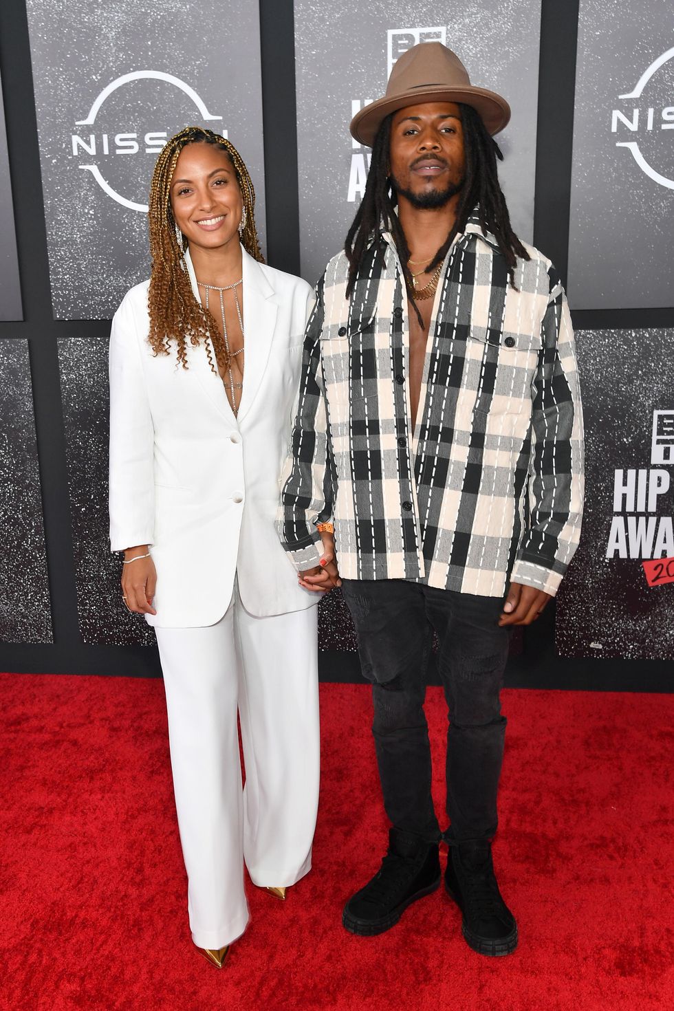 D Smoke and Angelina Sherie were the epitome of cozy-chic as they hit the red carpet, hand-in-hand. Angelina was angelic in an all-white slightly oversized suit, while D Smoke elevated his casual look with a stylish wide-brim hat.