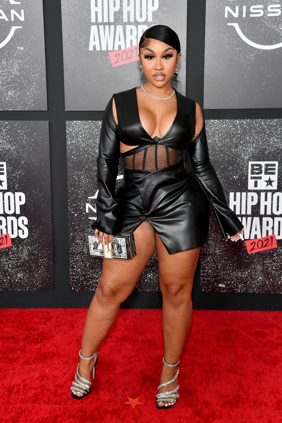 Ari Fletcher came through to support her man, Moneybagg Yo, but she did not disappoint. In all-black custom Calechie, Ari completed the look with a sleek bun and meticulously placed diamond-studded barrettes.