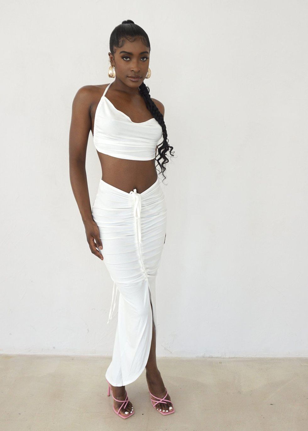 We love melanin dripped in white! This all-white set is sexy and feminine, and perfect for any summer day party.