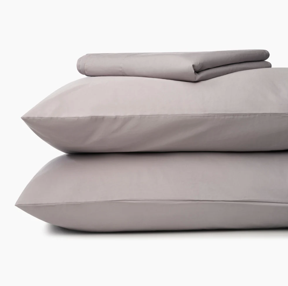 Includes 1 fitted sheet + 2 pillowcases. Top sheet optional. Mindful minimalism, meet practical comfort. This set skips the top sheet and includes one fitted sheet and two pillowcases so you can get creative with layering colors and textures in your bed-making, or not. Woven from 100% long staple cotton.