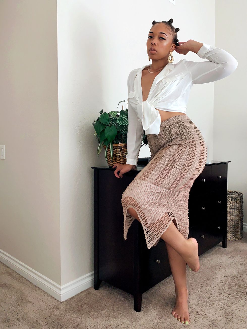Yellow is such an underrated color slowly making its way into mainstream fashion. It's perfect for women with darker skin tones. With this silk midi skirt, I decided to tie it in a side knot to give it an extra flair, paired with a yellow knit crop top for a stylish monochromatic daytime summer look. Perfect for a picnic date in the park, this warm-weather outfit will instantly become a favorite.