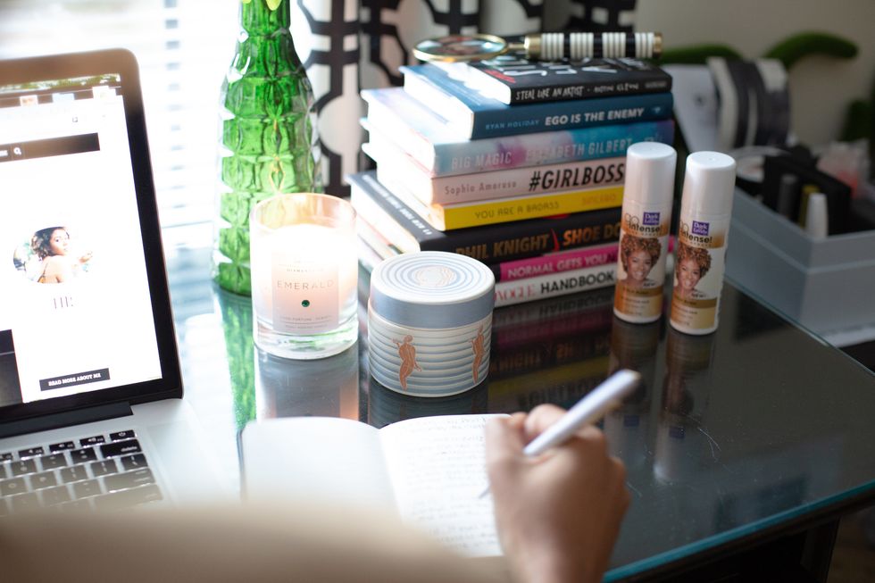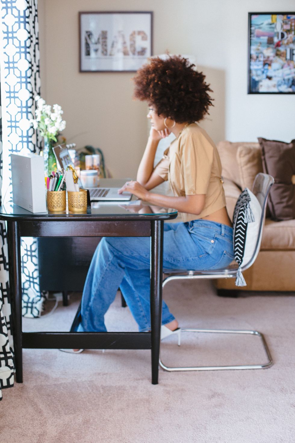 "I love my desk area the most. My desk in my office is actually a vintage desk that I redid." She continued, "It's comfy in here, it's quiet in here. I write in here a lot. I read in here a lot. I like to create vision boards and stuff like that. I create my jeans in here. I take a lot of my product shots in here when I'm doing reviews. It's also my guest room when I have guests over."