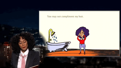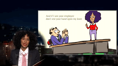 Tracee Ellis Ross has a word for men who don't know how to act. The Black-ish star graced The Jimmy Kimmel Show last night and addressed the influx of sexual harassment cases that have been circulating in the news whilst simultaneously giving men the scoop on what not to do with their hands. (Or their junk.)