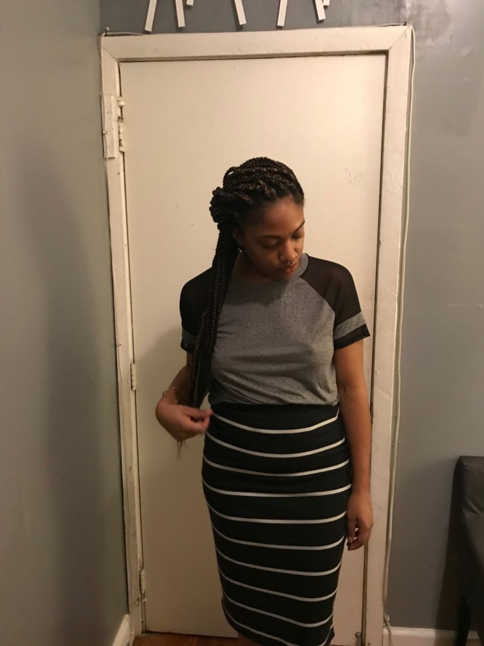 For the sake of professionalism, I had a tank top on under my top, which also happened to be oversized and kept things pretty much camouflaged.