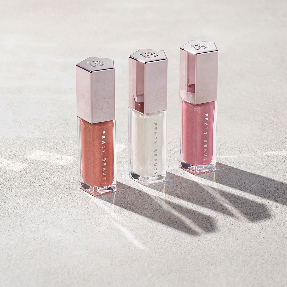 From (L to R) Glossier Cloud Paint Seamless Cheek Color in Dusk, Glossier Perfecting Skin Tint, Glossier Lash Slick Mascara, Fenty Beauty, Glossier Stretch Concealer