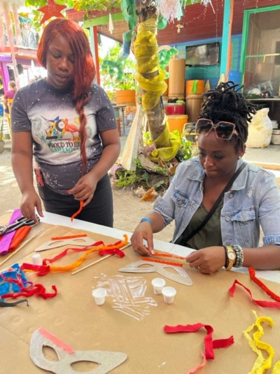 Before the parade, we also visited the Junkanoo World Museum & Arts Center where we had a behind-the-scenes look at what goes into putting the festival costumes together. We spent a morning with the owner, Quentin “Barrabas” Woodside, who explained how each costume and float was pasted with strips of colorful crepe paper by hand. He also showed us how to paste a mask, which gave us an appreciation of how much work went into preparing for Junkanoo.