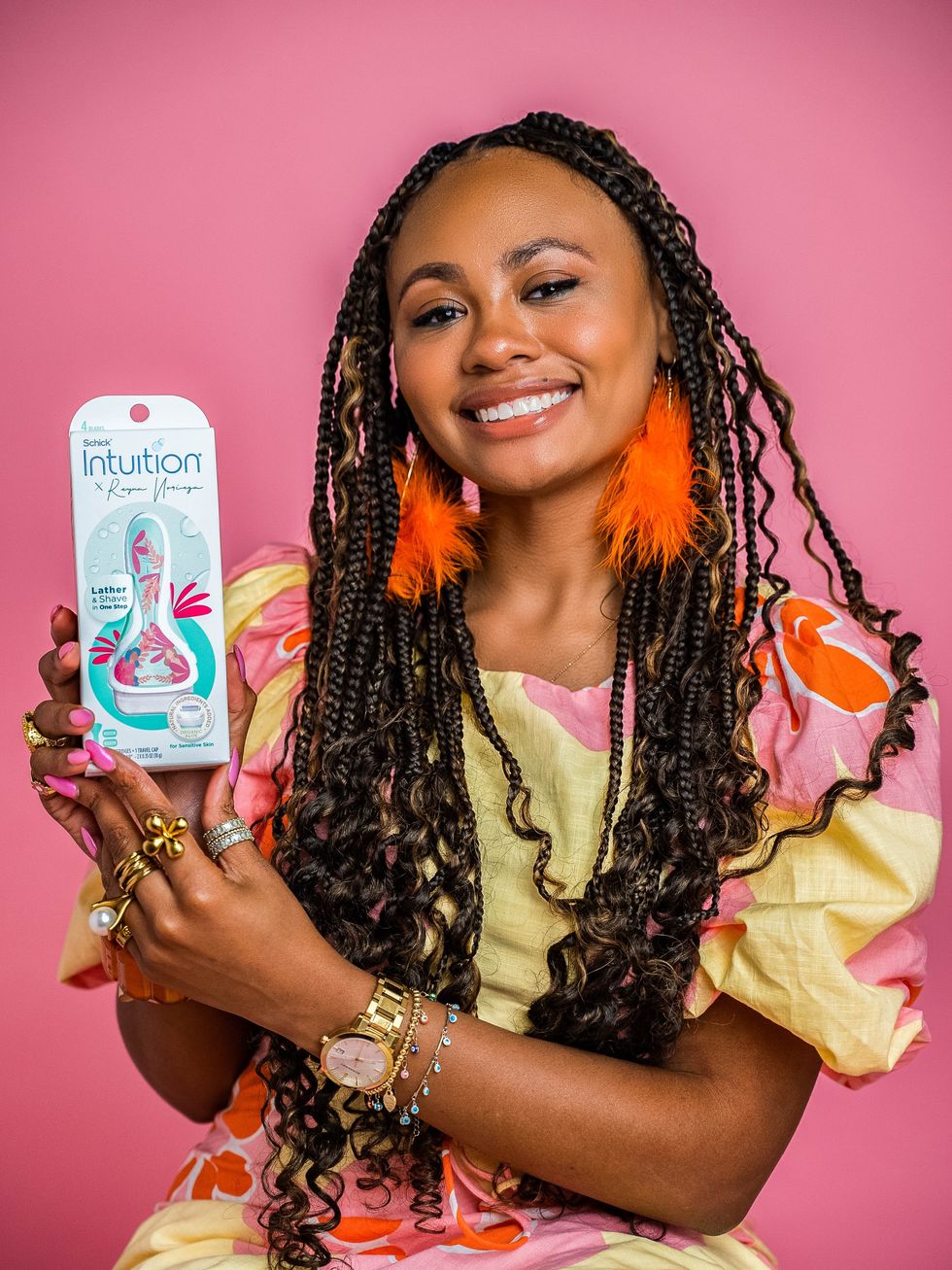 “My work is all about uplifting women, making them feel beautiful, and encouraging them to take up space,” she says. “Knowing that I was going to be able to put those figures on the razor and for it to be an unapologetic celebration of femininity and of my culture made it a very easy fit.”