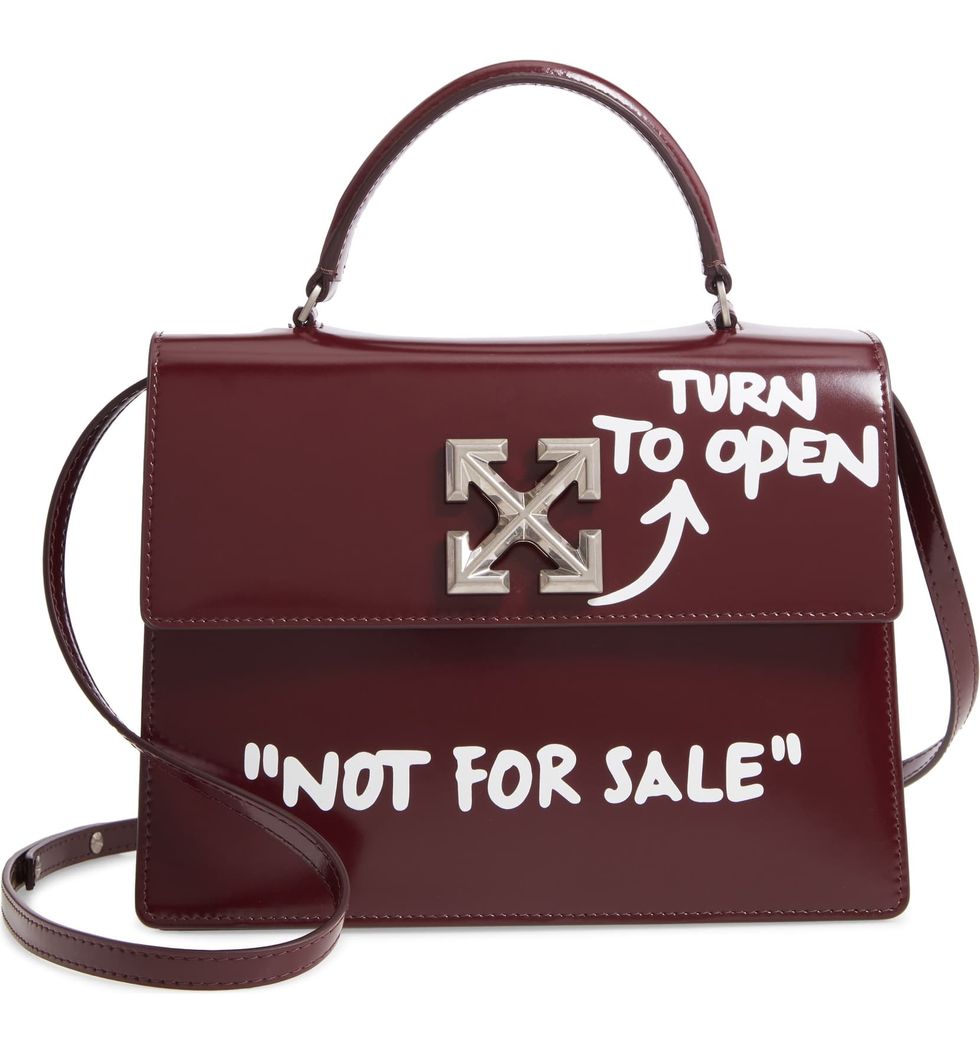 Time to secure the bag! Say hello to your new structured satchel sure to turn all the heads. It features the new signature OFF-WHITE "ARROWS" motif with unique, trendy sayings. We can see you pairing this bag with a fun t-shirt dress and your favorite shoes. For a cheaper alternative, shop here.