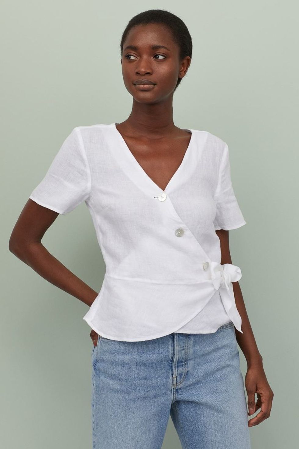 What's a wardrobe without a white top? We love this linen number for its breathability and versatility. You could rock this to the office with a midi skirt or couple it with jeans for a picnic in the park.