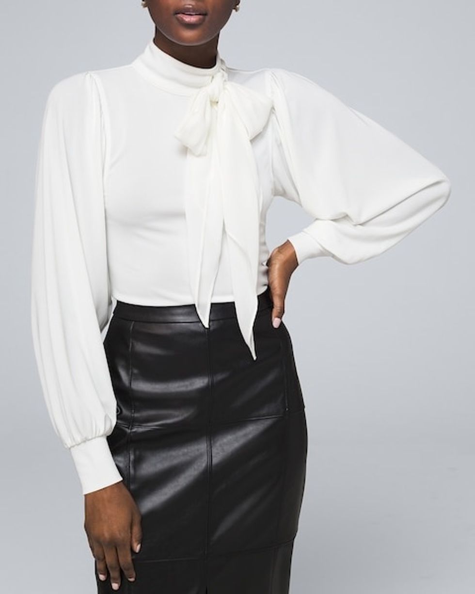 Women's Mixed-Media Bow Blouse by White House Black Market, Ecru