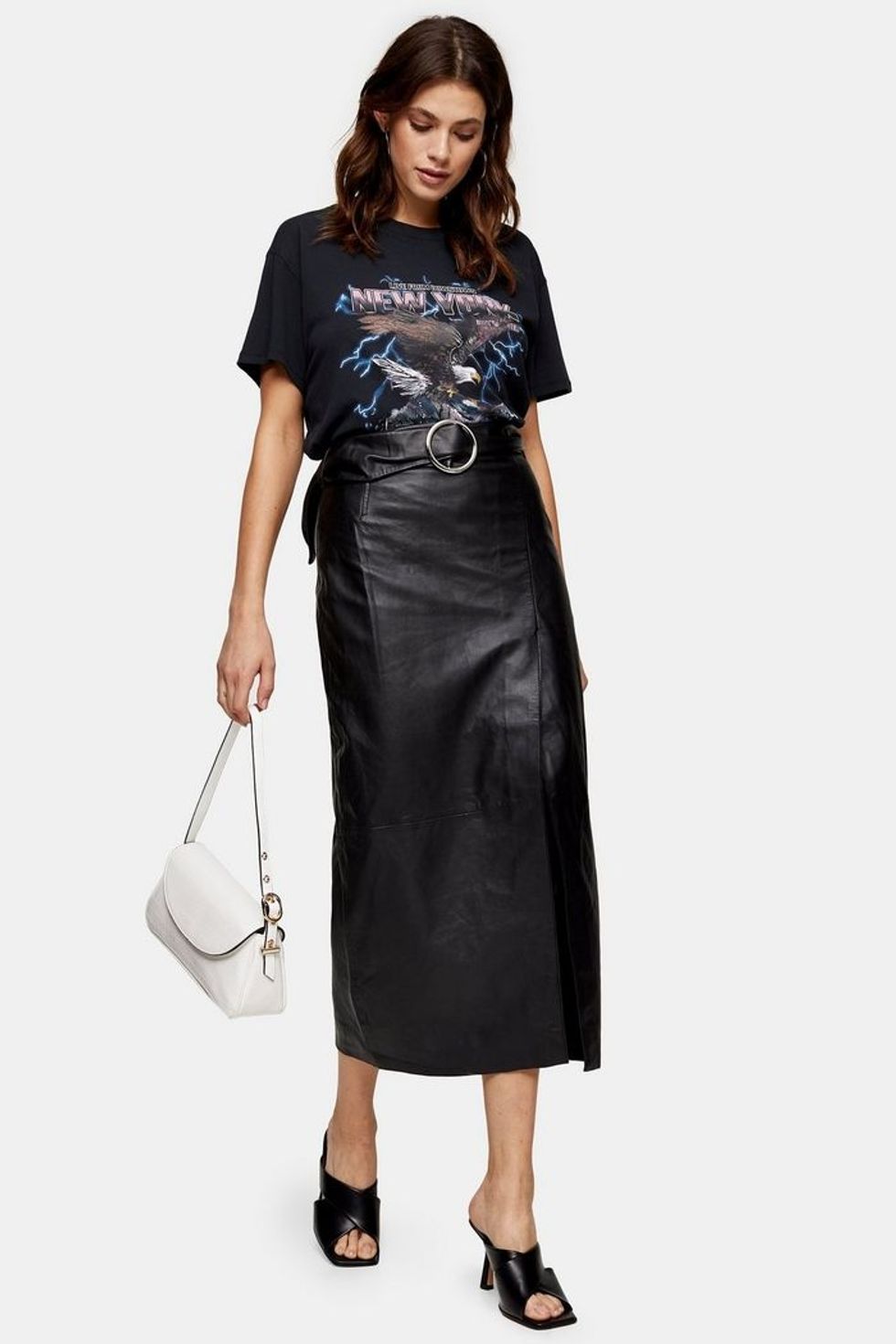 We live for a wrap-style silhoutte because of the way it flatters every shape and embraces every curve. This waist-cinching pencil skirt is a chic take on the professional staple, and due to its leather material can translate well in a work landscape or a night out, depending on if you wish to dress it up or down.