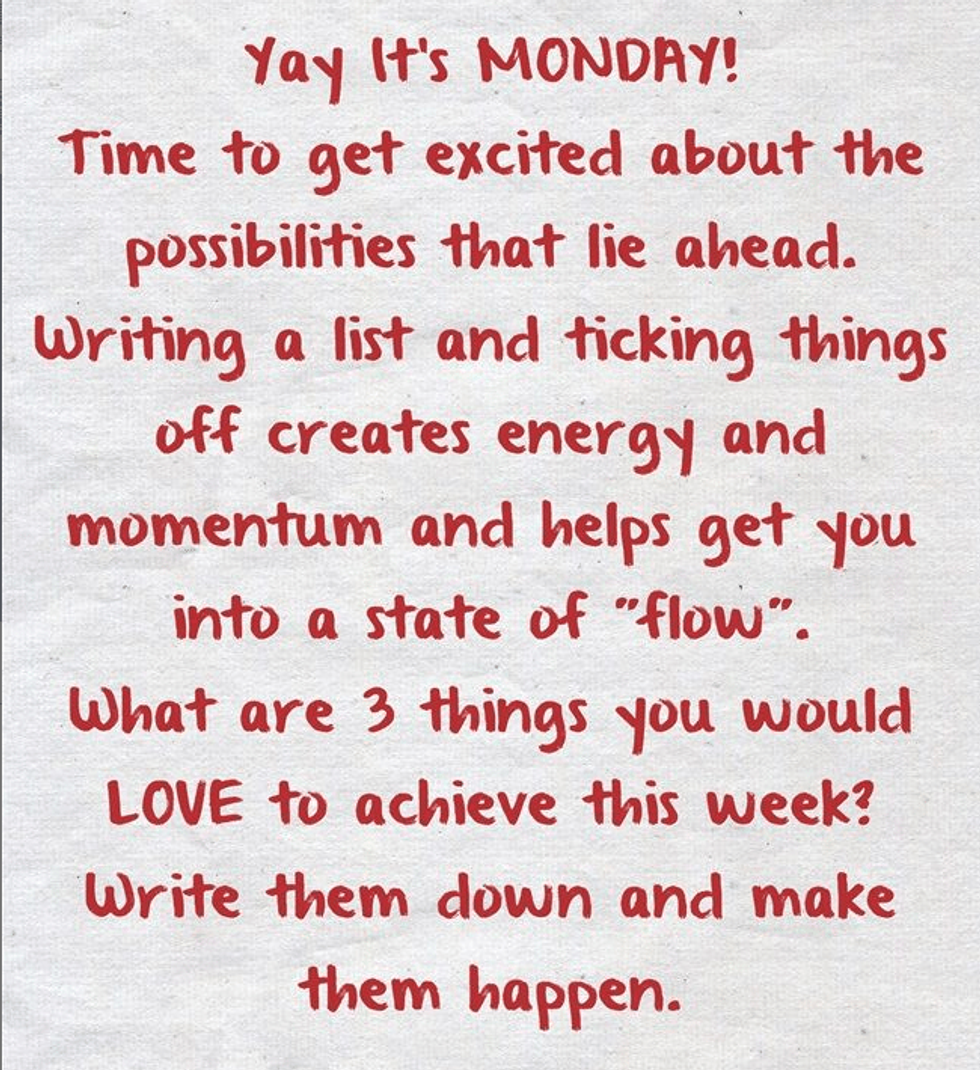I discovered this ritual in a Forbes article about stress associated with work and decided to try it out. On Sunday night, I make a list of all the things I’m looking forward to during the week ahead. Whether it’s drinks with a girlfriend or hearing back about a new opportunity, I write it down. I whip my list out on Monday before work just to remind me what I have to look forward to throughout the week. It may seem silly but it’s really effective. During the day, we are consumed with work-related tasks. It’s good to have a friendly reminder that you DO have a life outside of work and that Monday won’t last forever. The list has made a HUGE difference in my outlook on Mondays. I no longer dread Monday morning because I remember that it’s just a challenge to be met and the reward for a hard days work is written down on my list.