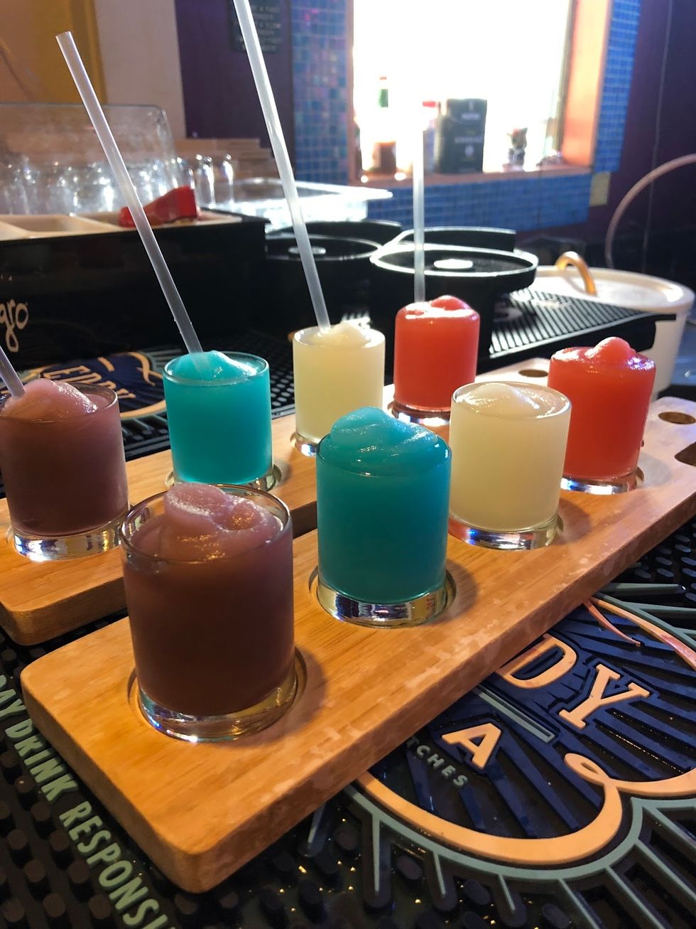 What exactly is in a purple margarita? Who cares if it puts you exactly where you need to be, right? This popular Mexican chain serves up a deliciously strong frozen purple concoction that they say is as mysterious as the Bermuda Triangle! The fact that they only allow two per customer says it all. And for those of you who are unable to decide which of the many other flavors on the menu you'd like to enjoy, the frozen margarita flight is the perfect solution. One flight is equivalent to a regular-sized drink. Salud!
