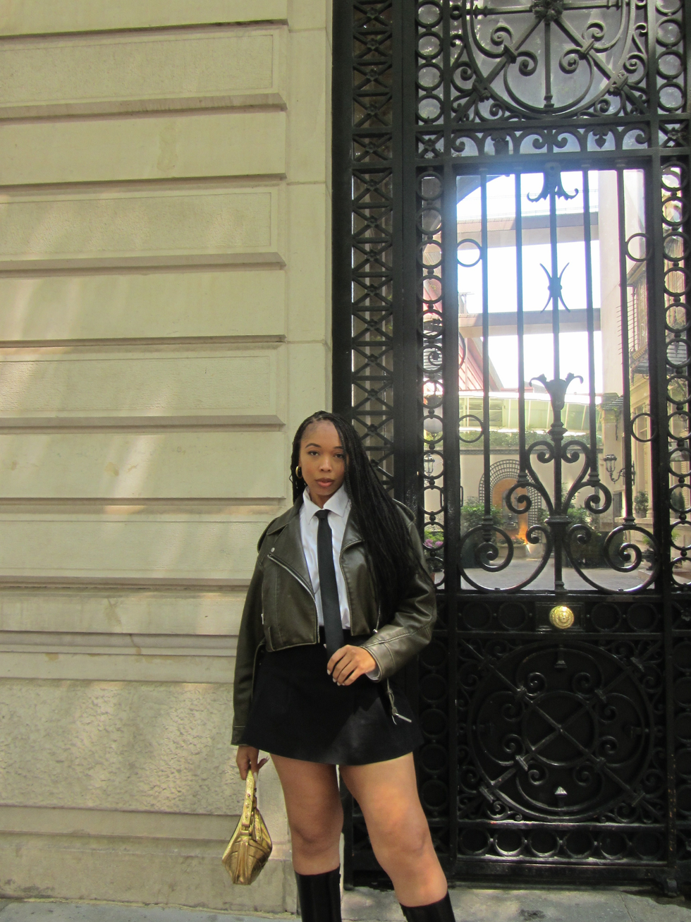 Incorporating menswear can be a cool addition to a women's look. Recently black neckties have taken on a unisex appeal within the spring/summer streetwear scene, and I couldn't wait to wear one of my own. In true Parisian fashion, I kept my tones neutral for a sleek look with a pop of gold metallic.