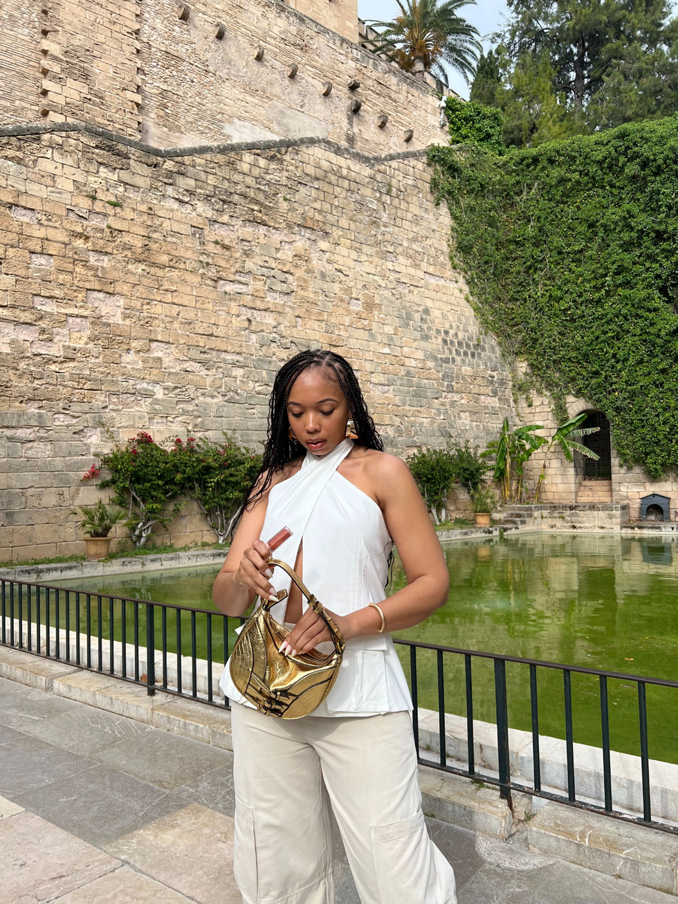 My goal? To blend in with the European aesthetic while also standing out in my own unique way. With perfectly warm temperatures along with stunning historical architecture, it was the perfect opportunity to shop for new clothes to fit my new surroundings. From neutral tones, lightweight trousers, bikinis, and chic accessories, these were items I could easily fit into a checked bag while also rotating between looks without a complete outfit repeat.