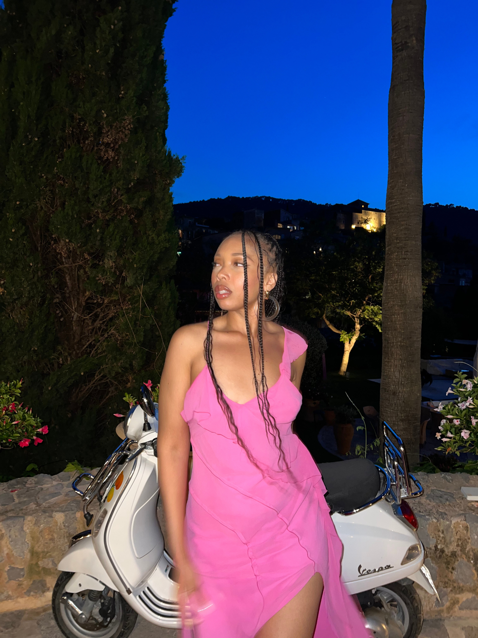 This maxi ruffle dress was perfect for dinner with a view. Fit for a fairytale, the romantic style was a must-have for a stunning nighttime look. Traveling through Europe with mostly neutral, there was no better time than this flowing fuschia moment.