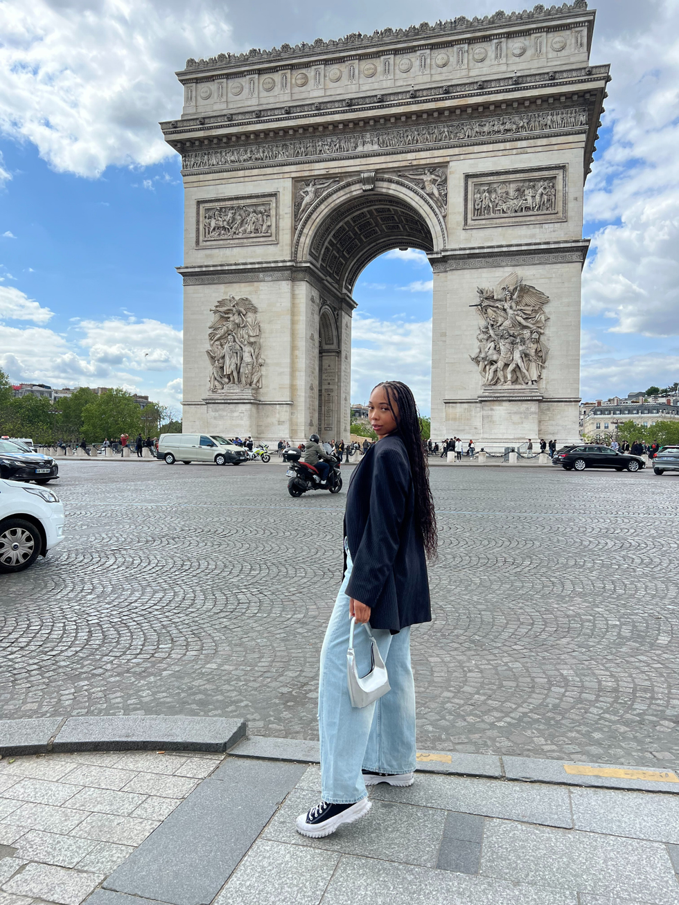 There’s an effortlessly casual nature about The City of Light with chic undertones that I instantly wanted to be a part of. On day one, I went with a pinstripe blazer paired with wide-leg distressed denim jeans and casual sneakers for a day of sightseeing. Perfect from day to night, a dark oversized blazer is a great choice for a variety of looks.