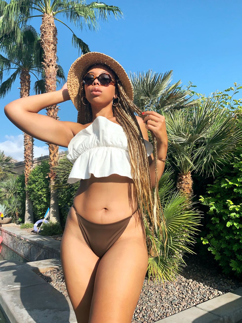 Burgundy Bay is a collection of ready-to-wear clothing and accessories with a range of styles to fit the fashion-forward woman. This ruffle crop top was a great addition to this trip due to the cool and lightweight fabric ideal for the extremely warm weather. I paired this top with these chocolate-colored Riot Swim bikini bottoms along with my straw bucket hat and tortoiseshell sunnies for a bit of fashion flair while prancing around the pool.