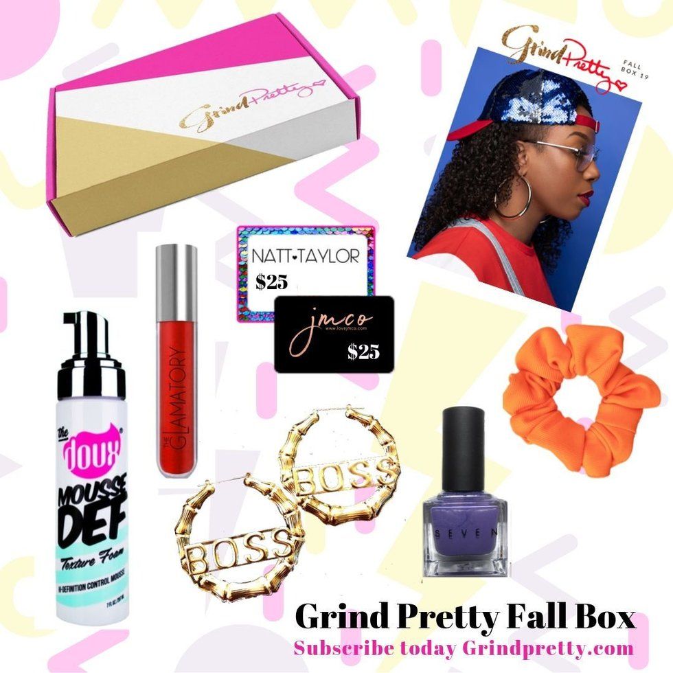 The 90s themed Grind Pretty Fall Box comes with seven products that range from a full-size bottle of the highly-rated The Doux Mousse Def Texture Foam, to $25 gift cards to use at JMCO and Natt Taylor to add a few new items to your closet this fall.