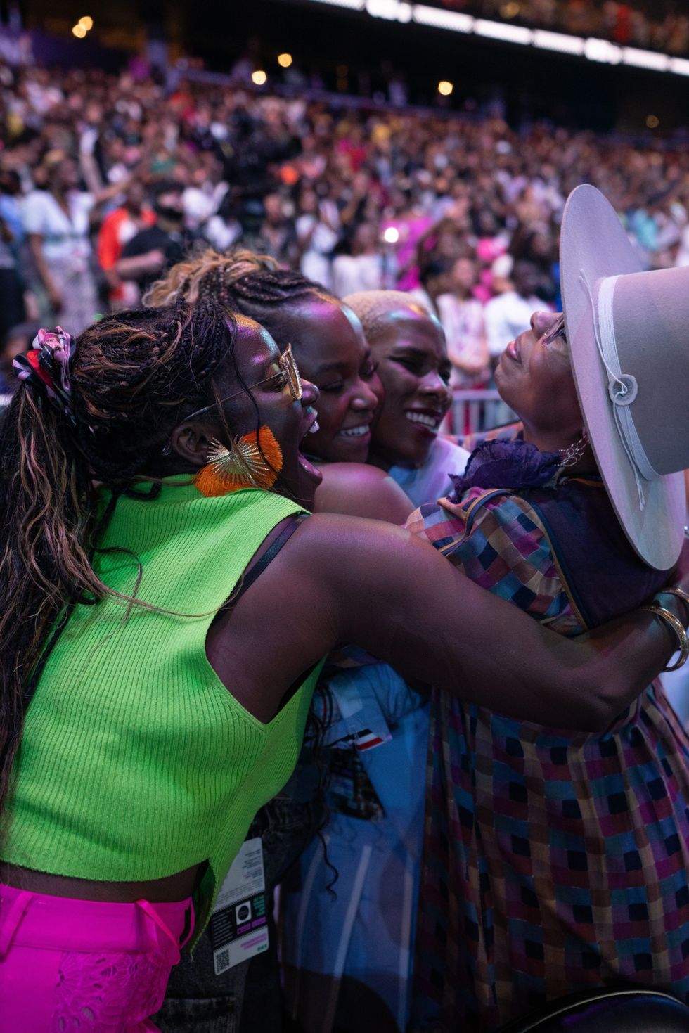 Luvvie Ajayi Jones embraces attendees at the Woman Evolve conference at Atlanta's State Farm Arena and Georgia World Congress Center, July 31 - Aug. 2, 2025.