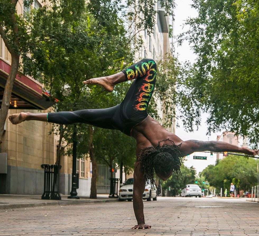 On any given day you can catch Derrick “DJ" Townsel bending and contorting his well-chiseled frame into seemingly impossible twists, backbends, and handstands that will make you want to be front and center at one of his yoga classes.