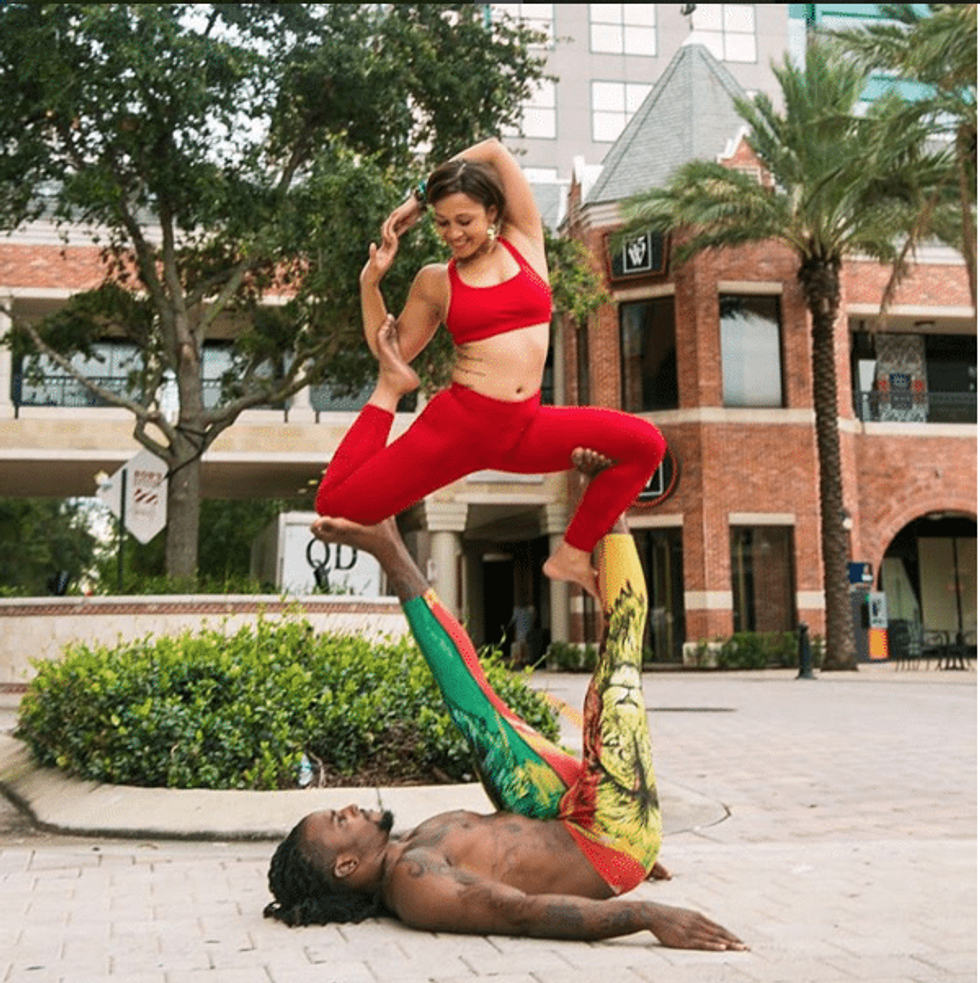 She actually found me through Instagram; she was following me and I invited my followers in Orlando to come and do a yoga class with me at the studio, and she came out and we started doing Acro[Yoga] that day and never stopped. That was actually two years ago..