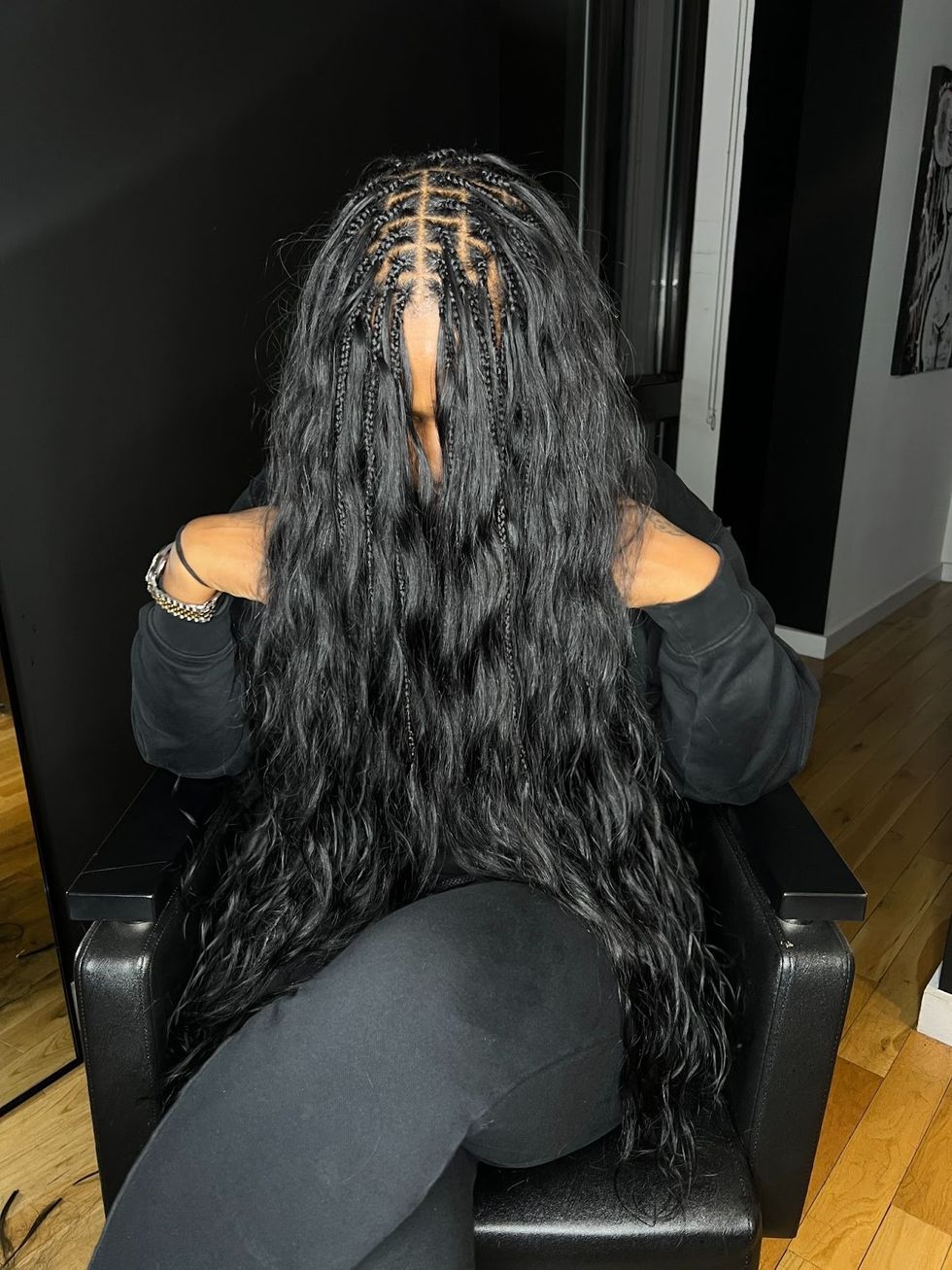 These braids typically consist of small to medium-sized box braids, sometimes accessorized with beads or cuffs, and are characterized by their bohemian style.