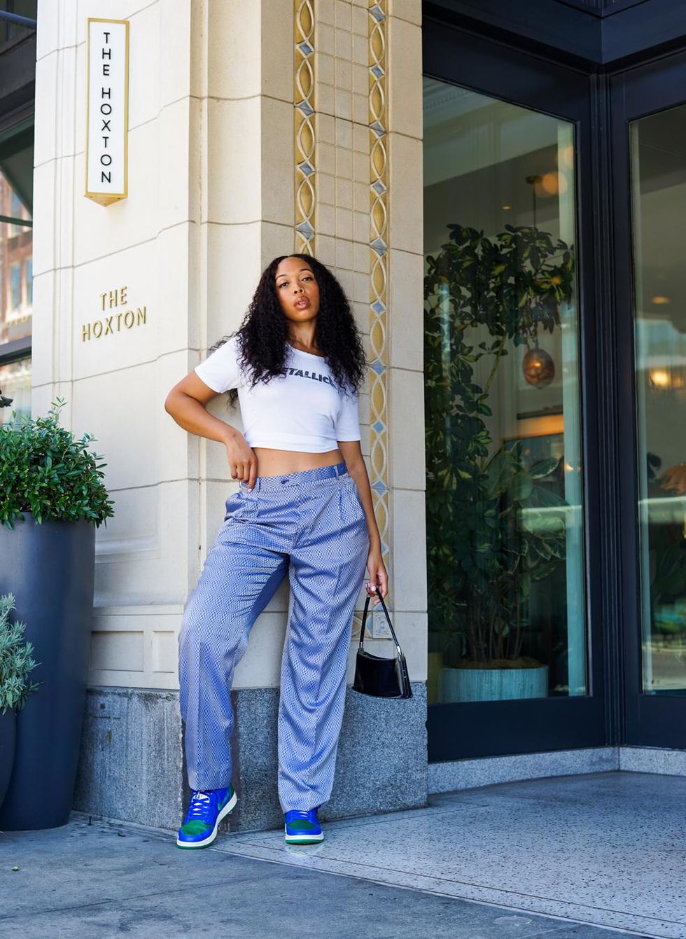 Geometric prints are having their moment this season as one of the biggest trends of 2021, so imagine my excitement when I stumbled upon these trousers at my local thrift store. I love wearing these low-riser oversized pants with just about anything, but sneakers and a cropped t-shirt is perfect when running around the city. My biggest lesson about wearing prints? Don't overthink items that are distinct. The best solution is always keeping it simple, especially when the goal is to be comfortable. This is the perfect look for minimal effort while flexing your personal style.